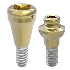 Pilares de Titânio, anodizados na cor amarela para reabilitações de Zircónio. Funcionam como interface, permitindo a ligação precisa das próteses aos implantes.