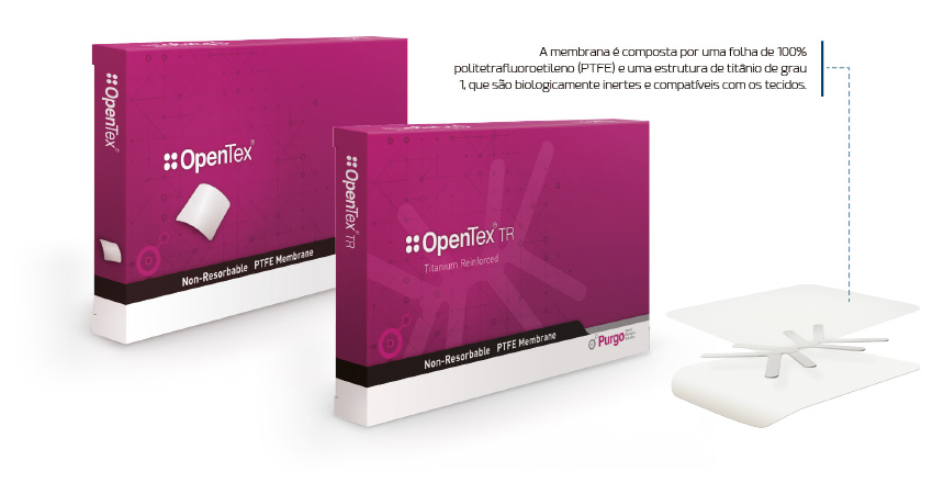A membrana de PTFE não reabsorvível OpenTex® é uma folha de politetrafluoroetileno (PTFE) puro de qualidade médica com caraterísticas biológicas inertes e um efeito de barreira previsível. Devido à superfície lisa e ao tamanho reduzido dos poros, a membrana de PTFE OpenTex® resiste à incorporação de bactérias na sua estrutura e facilita a remoção da membrana.