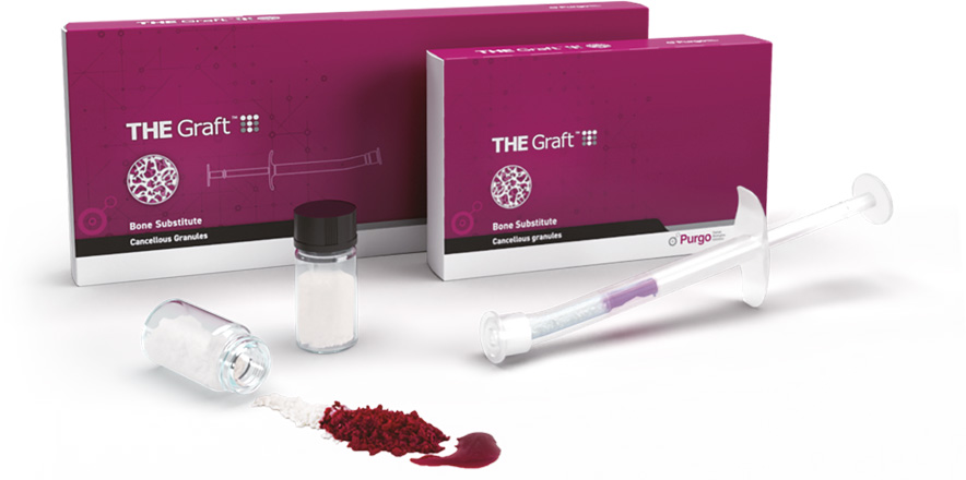 Uma matriz mineral óssea natural de origem porcina para reconstrução óssea. É produzida através da remoção de todos os componentes orgânicos do osso porcino. Devido à sua estrutura nativa, THE Graft™ assemelha-se aos aspetos físicos e químicos da matriz mineralizada do osso humano. Quando colocado num defeito ósseo, THE Graft™ é gradualmente reabsorvido e substituído por osso durante o processo de cicatrização. Está disponível em grânulos esponjosos embalados em frascos.