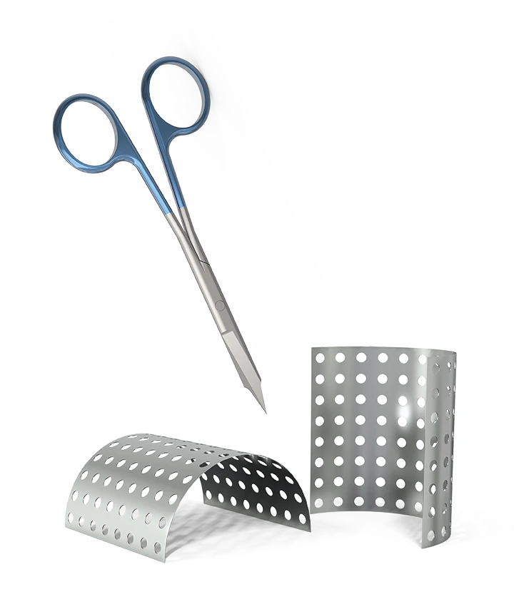 A folha de titânio perfurada ZS3 foi concebida para ser utilizada como dispositivo de barreira física em procedimentos de regeneração óssea guiada, nomeadamente nas regenerações verticais e horizontais. O seu design permite adaptar-se facilmente, garantindo a estabilidade do coágulo sanguíneo e do substituto ósseo, obtendo excelentes resultados clínicos.